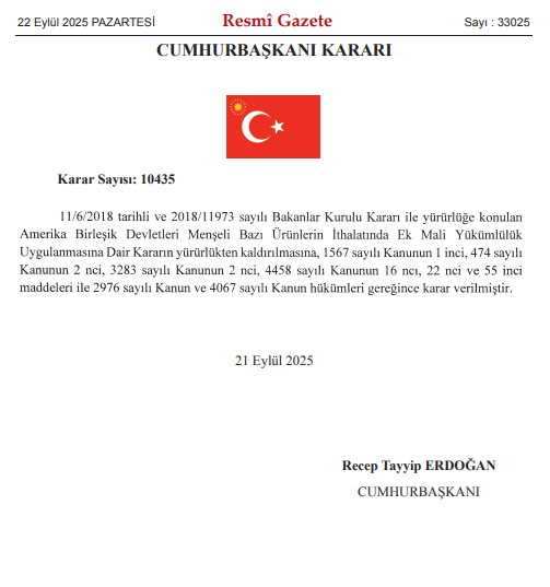 Gelinen noktada ABD ile yürütülen olumlu müzakereler, DTÖ Anlaşmazlıkların Halli Mekanizması kapsamındaki danışmalar ve panel raporları çerçevesindeki istişareler sonucunda, ABD menşeli bazı ürünlerin ithalatında uygulanan ek mali yükümlülüklerin sona erdirildiği duyuruldu.