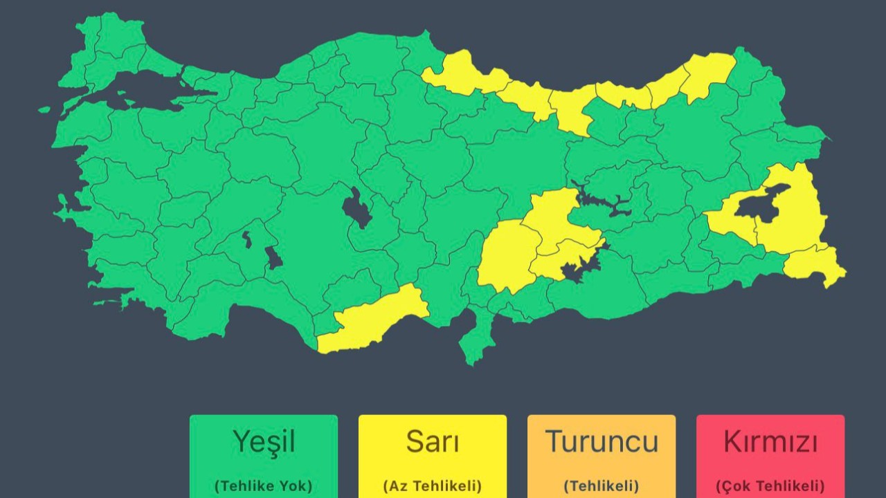 Meteoroloji Genel Müdürlüğü'nden alınan son bilgilere göre;