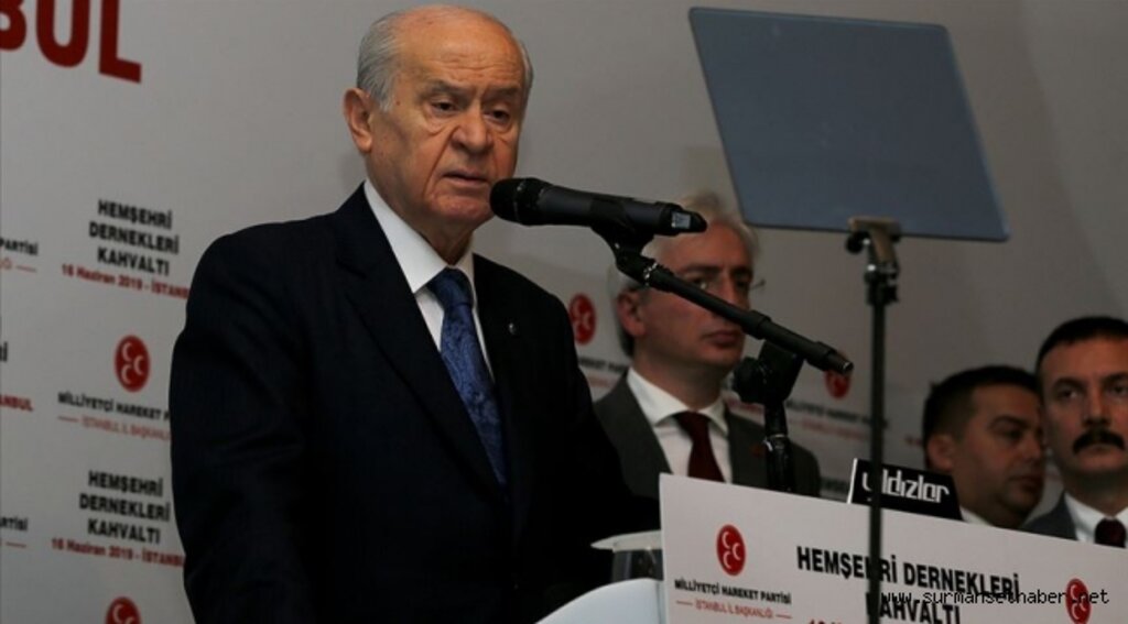 MHP Genel Başkanı Devlet Bahçeli, Ataköy'deki bir otelde, hemşehri dernekleri temsilcileriyle bir araya geldi.Türkiye'nin farklı illerinden gelerek İstanbul'a yerleşen vatandaşların, aynı zamanda kendi memleketleriyle bağlarını koparmadıklarını belirten Bahçeli, aynı zamanda 3 kıtanın sevdalılarının da İstanbul'da buluştuğunu söyledi.Hep birlikte Türkiye olarak anıların, acıların bir olduğunu ifade eden Bahçeli, hemşehri duygusunun çok güçlü ve özel bir bağ olduğunu dile getirdi.Bahçeli, hep birlikte büyük bir aile olunduğunu vurgulayarak, "Temiz bir vicdanın, temkinle pekişmiş bir vazife şuurunun, sağduyu ve teenniyle perçinlenmiş birlik ve beraberlik ruhunun başarılı olması kaçınılmaz bir hayat gerçeğidir. İnanırsak, iddialarımızı fikir, çalışma ve samimiyetle desteklersek yapamayacağımız şey yoktur. Emanete riayet edip ehline teslim edersek manevi vebalden kurtulmuş oluruz." ifadelerini kullandı.23 Haziran'da kardeşliğin ve huzurun kazanması arayışında olduklarını dile getiren Bahçeli, "23 Haziran'da milli birlik ve dayanışma ruhuyla birlikte hemşehrilik duruşunun öne çıkması, ağırlıklarından kurtulması amacındayız. Milli beka hasımlarının, ülkemizin istikrarına göz koyanların, milli varlığımıza diş bileyenlerin fırsat bulamayacağı bir neticenin 23 Haziran'da çıkmasını ümit ediyoruz." diye konuştu.Cumhur İttifakı'nın etle tırnak gibi olduğunu ifade eden Bahçeli, konuşmasını şöyle sürdürdü:"Cumhur İttifakı'na gölge düşürmeye yönelik girişimler beyhudedir. Fikirsiz, samimiyetsiz, köksüz ve vicdansız zihniyet sahiplerinin attıkları nutuklar da kendileri gibi boşlukta kalmaya mahkumdur. Cumhur İttifakı İstanbul'u ehline emanet etmek için seferberlik başlatmıştır. Cumhur İttifakı İstanbul'a sahip çıkmaya kararlıdır. Cumhur İttifakı, İstanbul'u yüceltmeye yeminlidir. İstanbulluların tecrübeyi bağrına basacağından ve İstanbul'a yakışır bir hizmet için Cumhur İttifakı'nın adayı Sayın Binali Yıldırım'ı Büyükşehir Belediye Başkanı seçeceğinden de zerre şüphem yoktur."31 Mart'taki seçimlerde kuşkulu oy pusulalarının bulunduğunu belirten Bahçeli, "Görünen odur ki, İstanbul seçimlerine şaibe bulaştıranlar CHP'nin adayına sıkı sıkıya sarılmışlar, umut bağlamışlardır. İstanbul'un iradesi alenen karalanmıştır. Göz göre göre İstanbullulara ihanet edilmiştir. 23 Haziran, bu şaibelerin ortadan kalktığı, çalınan oyların sahibine teslim edildiği, maşeri vicdanın huzura ve rahata erdiği bir seçim olacaktır. İstanbul hak ettiği değere kavuşacak, 31 Mart'tan bu yana İstanbul'u oyalayanlardan sandıkta hesap sorulacaktır." şeklinde konuştu."CHP'nin HDP'ye teşekkür mesajları unutulmuş değildir"