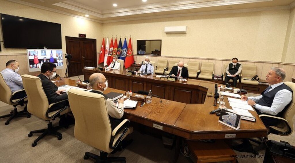 Milli Savunma Bakanı Hulusi Akar başkanlığında, Genelkurmay Başkanı Orgeneral Yaşar Güler, Kuvvet Komutanları, Bakan Yardımcısı Yunus Emre Karaosmanoğlu ve birlik komutanlarının katılımıyla video konferans toplantısı gerçekleştirildi.Bakan Akar'ın talimatlar verdiği toplantıda, Kuvvet ve Ordu Komutanlarının yanı sıra yurt içi ve dışındaki birlik komutanları, devam eden faaliyetlere ve sahadaki son duruma ilişkin bilgiler verdi.Savunma ve güvenlik konuları kapsamında Doğu Akdeniz'deki gelişmeler, terörle mücadele harekatları ve yeni tip koronavirüsle (Kovid-19) mücadelede alınan tedbirlerin de ele alındığı toplantıda konuşan Akar, "Türk Silahlı Kuvvetleri yoğun bir dönemden geçiyor. Şu ana kadar büyük bir başarıyla bize verilen görevleri yerine getirdiniz. Bundan dolayı hepinizi kutluyorum. İnşallah bundan sonra da aynı ciddiyet ve samimiyetle, diyalog ve koordinasyon içinde faaliyetleri yürütmek suretiyle bize verilen görevleri başaracağız." ifadesini kullandı.Zorlu hava ve arazi şartlarında terörle mücadelenin kararlılıkla devam ettiğini dile getiren Akar, "Teröristlerde çöküş olduğunu hepimiz görüyoruz. Bununla alakalı bir sürü iz var. Bu çöküşün devamı için baskımızı, operasyonlarımızı, takibimizi sürdüreceğiz. Mehmetçiğin nefesi teröristlerin ensesinde. Teröristlerin tüm inlerini, barınaklarını, sığınaklarını tahrip edeceğiz." diye konuştu.Akar, zorlu hava şartlarına karşı gerekli tedbirlerin alınmasına yönelik de talimat verdi.En son terörist etkisiz hale getirilinceye kadar terörle mücadelenin devam edeceğini vurgulayan Akar, "Bunu yaparken de hem Erbil ile hem Bağdat ile ilişkilerimizi hakka, hukuka saygılı, yapıcı şekilde gerçekleştiriyoruz. Olumlu gelişmelerin olması için gayret gösteriyoruz. Birlikte hedefe varmamız lazım. Hem Iraklı kardeşlerimiz hem de bizim için güvenliğin sağlanmasının yolu bu. Burada omuz omuza çalışmalarımızı sürdürmeye devam edeceğiz." görüşünü paylaştı.Kerkük'teki gelişmelere yönelik değerlendirmelerde bulunan Akar, "Kerkük'teki Türkmenlerin hakkının, hukukunun korunması bizim için çok önemli. Oradaki gelişmeleri çok yakından takip ediyoruz." sözlerini sarf etti.