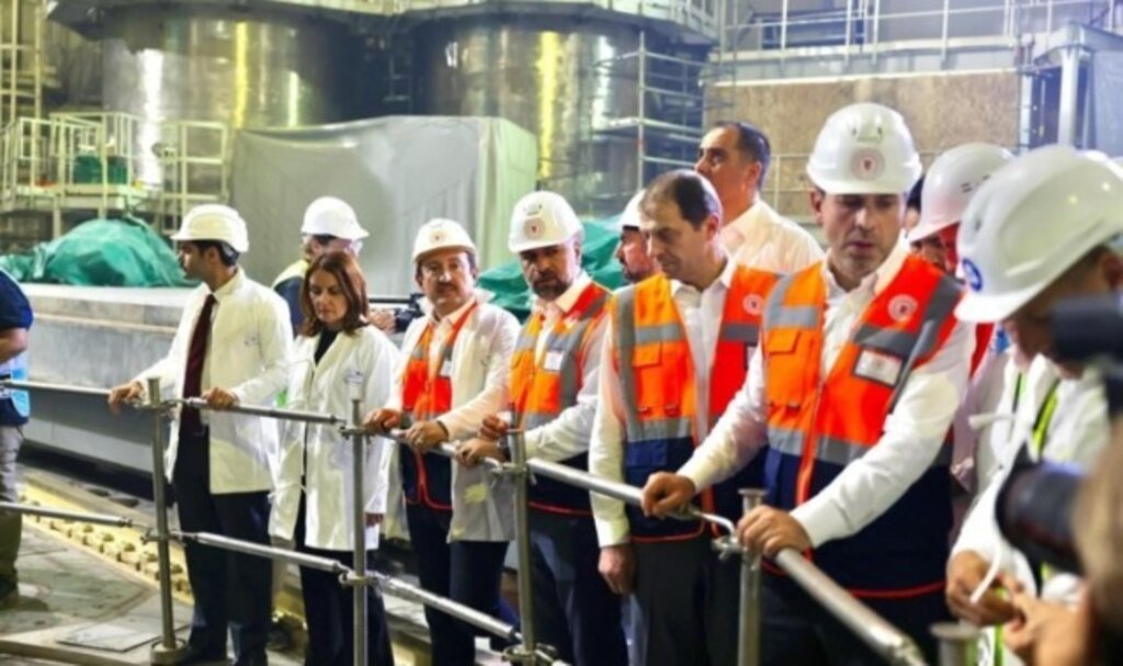 Mersin’e giden Enerji ve Tabii Kaynaklar Bakanı Alparslan Bayraktar, Vali Ali Hamza Pehlivan, Enerji ve Tabii Kaynaklar Bakan Yardımcısı Zafer Demircan, Mersin Milletvekili Havva Sibel Söylemez, Mersin Milletvekili Ali Kıratlı ve beraberlerindeki heyet ile birlikte; yapımı devam eden Akkuyu Nükleer Güç Santrali inşaat alanını ziyaret etti, çalışmaların geldiği aşamalar hakkında bilgiler aldı.“Yüzde 10’unu karşılayacak”Bakan Bayraktar başkanlığında, Nükleer Denetleme Kurumu toplantı salonunda, inşaat çalışmalarının son durumu hakkında değerlendirme toplantısı gerçekleştirildi. Saha içerisinde de incelemelerde bulunan Bakan Bayraktar, ” Akkuyu Nükleer Güç Santrali’nin ilk ünitesinin en kısa zamanda devreye alınabilmesi için çalışmalarımız hızla devam ediyor. Bugün ilerlemeleri yerinde görmek için sahayı ziyaret ederek çalışmaların son durumu hakkında bilgiler aldık. Akkuyu NGS’de dört reaktörün inşaatı aynı anda devam ediyor. Birinci ünitenin inşa faaliyetlerini büyük oranda tamamladık. 2028 yılında inşallah tüm reaktörleri devreye alarak enerji ihtiyacımızın yüzde 10’unu buradan karşılayacağız.” ifadelerini kullandı.