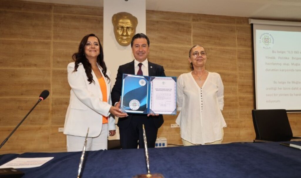 Muğla Büyükşehir Belediye Başkanı Ahmet Aras’ın imzaladığı “Şiddete Karşı Tutum Belgesi” ILO 190 sayılı Çalışma Yaşamında Şiddet ve Tacizi Önlemeye Yönelik Politika Belgesi” doğrultusunda ulusal mevzuat temelinde hazırlandı. Bu belge ile Muğla Büyükşehir Belediyesi 13 ilçe kapsamında hizmet ürettiği her birim dahil olmak üzere, her türlü şiddete, tacize ve mobbinge (bezdirme, psikolojik baskı) karşı nasıl bir yöntem ile hareket edeceğini ve asla taviz vermeyeceğini ilan ediyor.