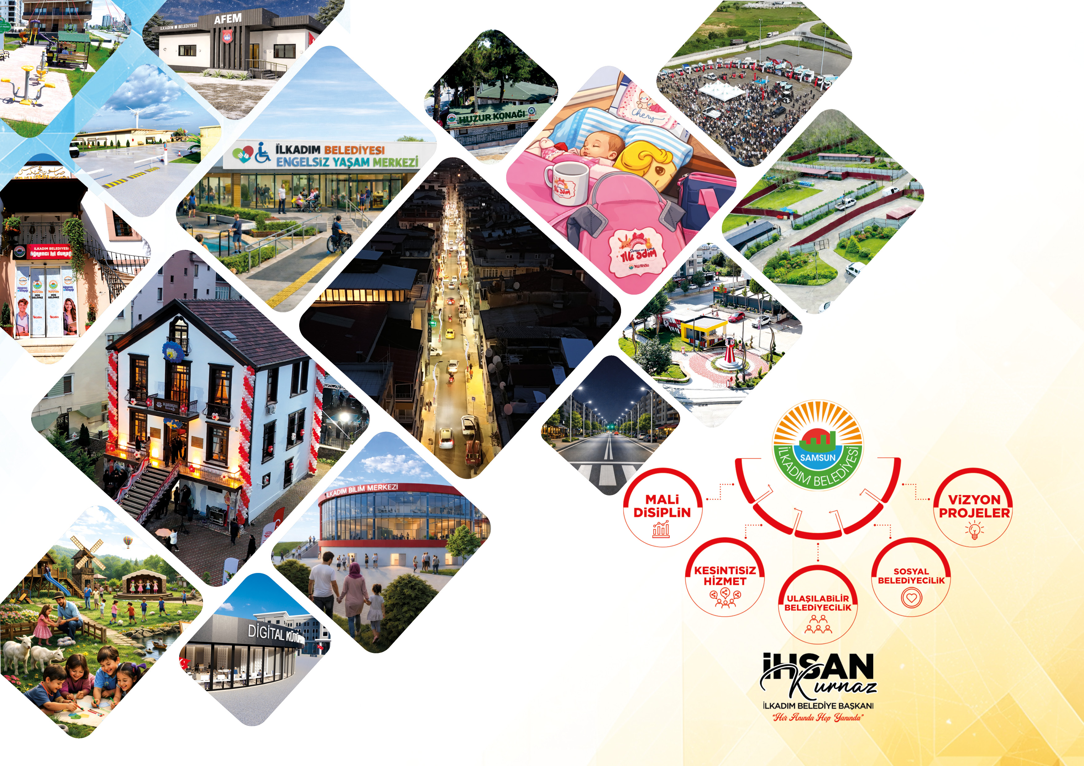 ‘KENTİN ÇEHRESİ DEĞİŞİYOR’Planlı büyüme, güçlü altyapı, sosyal belediyecilik ve çevre duyarlılığı ilkeleri doğrultusunda geliştirilen vizyon projelerle, ilçeyi geleceğe taşımayı sürdürdüklerini belirten Başkan İhsan Kurnaz, “İlkadım’ı sadece bugünün değil, yarının da ihtiyaçlarını karşılayacak şekilde planlıyoruz. Daha yaşanabilir, daha düzenli ve daha güçlü bir şehir hedefiyle çalışmalarımızı aralıksız sürdürüyoruz. Güçlenen ulaşım ağı, yenilenen parklar ve sosyal yaşam alanları, çevre dostu uygulamalar ve vatandaş odaklı hizmet anlayışıyla İlkadım’ın çehresi değişiyor” diye konuştu.