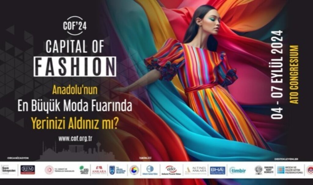Ankara Giyim Sanayicileri Derneği ve Rem Fuar Organizasyon işbirliğiyle Ankara’nın yerleşik Markalarının katılımıyla bu yıl ilk kez düzenlenecek olan Capital of Fashion (COF’24) Ankara Uluslararası Hazır Giyim ve Moda Fuarı ATO Congresium Fuar alanında 4-7 Eylül 2024 tarihleri arasında gerçekleştirilecek.