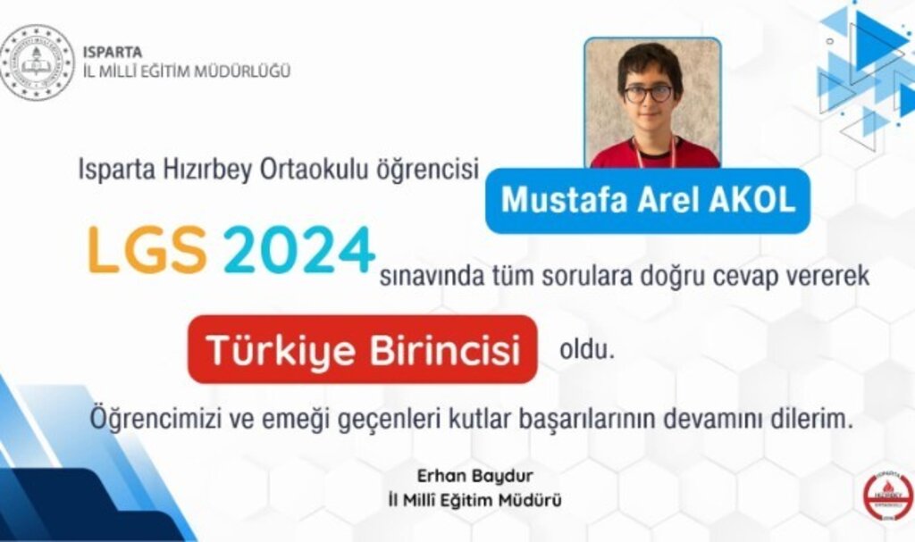 Isparta Milli Eğitim Müdürü Erhan Baydur, LGS Birincisi olan Hızırbey Ortaokulu Öğrencisi Mustafa Arel Akol ile öğretmenlerini ve ailesini tebrik etti.