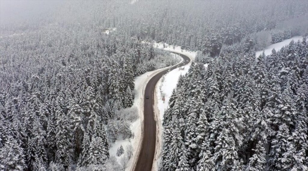 Kastamonu ve Bartın arasında kalan Küre Dağları, kar yağışının ardından havadan görüntülendi.