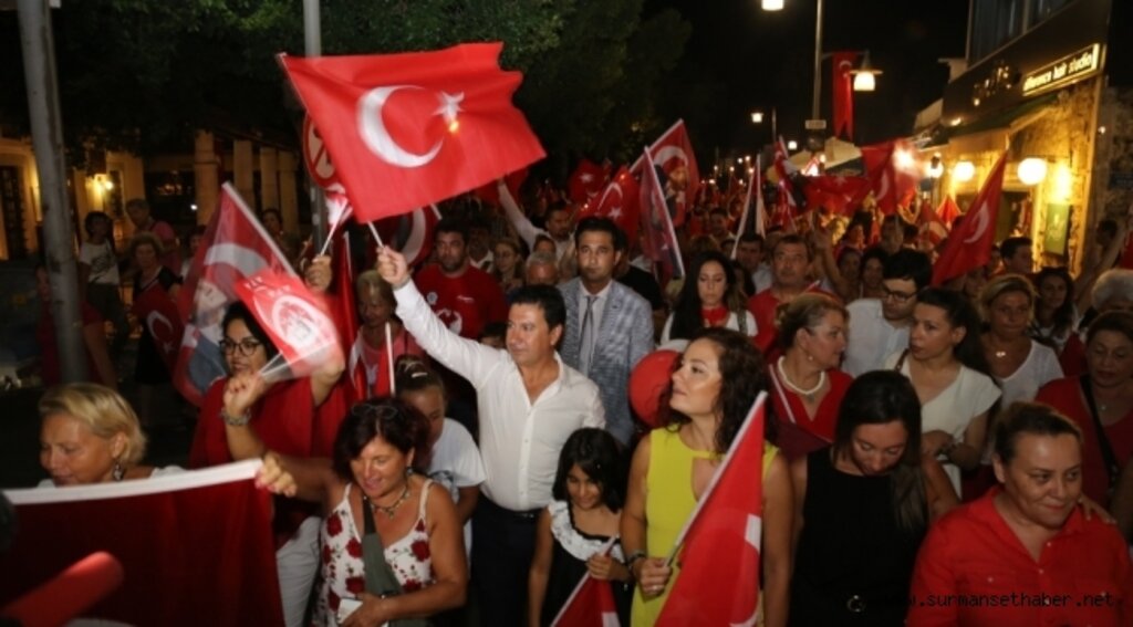 Bodrum Milta Marinadan başlayan fener alayına Bodrum Belediye Başkanı Ahmet Aras, Başkan yardımcısı Ummahan Yurt, bodrum Belediye meclis üyeleri, siyasi parti ve sivil toplum kuruluşu temsilcileriyle birlikte binlerce vatandaş katıldı. Zafer Bayramı coşkusunun Bodrum sokaklarına yayıldığı fener alayı Bodrum Belediye Meydanında sona erdi.Fener alayının ardından ise meydanda Faruk Demir ve Soner Olgun sahne aldı. Sunuculuğunu ünlü şovmen Hakan Doğanay'ın yaptığı gecede sahneye çıkan Bodrum Belediye Başkanı Ahmet Aras Nazım Hikmet'in 'Büyük Taarruz' şiirini de okuduğu ve meydana dolduranlar tarafından büyük alkış alan konuşmasında şunları söyledi;" Bugün ulusumuzun en büyük bayramını kutluyoruz. Bugün Türk milletinin gücünü ortaya koyduğu ve egemenliğini kayıtsız şartsız eline aldığı gündür. En karanlık yoksulluğun, en derin uçurumun kıyısında, tüm güçleri yıpranmış, bütün savunma araçları elinden alınmış, kutsal varlıkları saldırıya uğramış bir milletin, canını dişine takarak, bütün inancıyla verdiği kurtuluş mücadelesinin ulaştığı zaferin 97’nci yıldönümüdür. Türk milletinin tarihi çok parlak, çok büyük zaferlerle doludur. Ancak bunların hiçbiri 30 Ağustos Zaferi kadar kesin sonuçlu, ve dünya tarihine yön verecek kadar etkili olmamıştır. 30 Ağustos zaferi tarihimizin en önemli dönüm noktasıdır. Çünkü genç Türkiye Cumhuriyeti’nin temeli 1922’de zaferle sonuçlanan o meydan savaşında sağlamlaşmış, Türk devletinin ölümsüzlüğü bu zaferle taçlanmıştır. Unutmayınız ki Zafer, “Zafer Benimdir” diyebilenlerindir. Başarı ise “Başaracağım” diye başlayan ve sonunda “Başardım” diyebilenlerindir. Bugün büyük bir coşkuyla kutladığımız 30 Ağustos zaferinin mimarı Gazi Mustafa Kemal Atatürk ve kahraman silah arkadaşlarını, aziz şehitlerimizi, ebediyete intikal eden kahraman gazilerimizi ve tüm Türk Silahlı Kuvvetler mensuplarını minnet ve rahmetle yad ediyor, hayatta olan kahraman gazilerimize, şehitlerimizin ve gazilerimizin kıymetli ailelerine saygı ve şükranlarımı sunuyorum. Akan kanlar, şehit ruhları, cumhuriyetimizin ölümsüz koruyucularıdır. 30 Ağustos Zafer Bayramımız ve tarihi şanla, şerefle dolu şanlı ordumuzun Türk Silahlı Kuvvetleri Günü kutlu olsun."FARUK DEMİR YETİM KIZ ÖĞRENCİLERE BURS İÇİN BODRUM'A GELDİBaşkan Aras'ın konuşmasının ardından sahneye çıkan Ardahan Belediye Başkanı Faruk Demir 'Sarı Saçlı Mavi Gözlü' türküsünü seslendirdikten sonra "Zaferimiz kutlu olsun" diyerek başladığı konuşmasını şöyle sürdürdü;" Atatürk diyor ya; "Türk milleti büyüktür" diye, gerçekten büyüksünüz. Ardahan'dan, Serhat Ardahan'dan yani Kazım Karabekir paşamızın dediği gibi; "Boğazlar boğazımız, Kars, Ardahan bel kemiğimizdir. Oralar elde bulundurulmadıkça Anadolu'nun müdaafasıda zor olur" diyor. İşte o diyardan selam getirdim. Burs bekleyen öğrencilerden size selam getirdim.BAŞKAN ARAS'A FAHRİ HEMŞEHRİLİK BERATIBodrum Belediye Başkanı Ahmet Aras'ın davetlisi olarak Bodrum'da 30 Ağustos Zafer Bayramında sahne alan Ardahan Belediye Başkanı Faruk Demir, konserden elde edilen gelirin hepsinin yetim kız çocukları için burs olduğunu belirterek konuşmasını şöyle sürdürdü;"Babasını annesini kaybetmiş, üniversiteyi kazanmış Ardahan'da okuyan kız öğrencilerine burs vermek için buradayız. Cumhuriyet kimsesizlerin kimsesidir. Onları kimsesiz bırakmamak için Ahmet başkanıma çok teşekkür ediyorum. Buradan alacağımız bir kuruş Faruk Demir'e yada Ardahan Belediyesine gitmeyecek. Hepsi kayıtlı olarak yetim üniversiteli kız çocuklarımıza gidecek. Hel olsun, helali hoş olsun. Bu davranışından ötürü sayın Ahmet Aras başkanımızı biz tabiki Ardahanlılar olarak, biz buradaki Cumhuriyet sevdalıları, bağımsız Türkiye sevdalıları olarak hepiniz kutluyorsunuz ama özel olarak Cumhuriyet Halk Partimizin genel başkanı sayın Kemal Kılıçdaroğlu'nun Bodrum Belediye Başkanımıza bu davranışından dolayı özel selamlarını ve sevgilerini getirdim."Faruk Demir ayrıca başkan Aras'a kız çocuklarına vermiş olduğu destekten dolayı fahri hemşehrilik beratı vereceğini açıkladı. Faruk Demir konuşmasının ardından sevilen türküleri meydanı dolduran binlerce vatandaş ile birlikte seslendirdi. Demir son olarak yine "Sarı saçlı mavi gözlü" türküsünü seslendirerek sahneden ayrıldı.Bodrum'da unutulmaz bir Zafer Bayramı kutlamasının yaşandığı gecede Faruk Demir'in ardından sahneye Soner Olgun çıktı. 10'uncu Yıl Marşı ile sahneye çıkan Soner Olgun, gecenin düzenlenmesinde emeği geçen herkese teşekkür ederken, konseri halkın arasında takip eden başkan Aras'ı gören Olgun, "İlk defa böyle protokolde oturmayıp halkın arasında ayakta konser izleyen belediye başkanı gördüm" dedi. Soner Olgun daha sonra seslendirdiği türküler, şarkılar ve şiirleri ile meydanı dolduran binlere duygusal ve unutulmaz bir gece yaşattı.