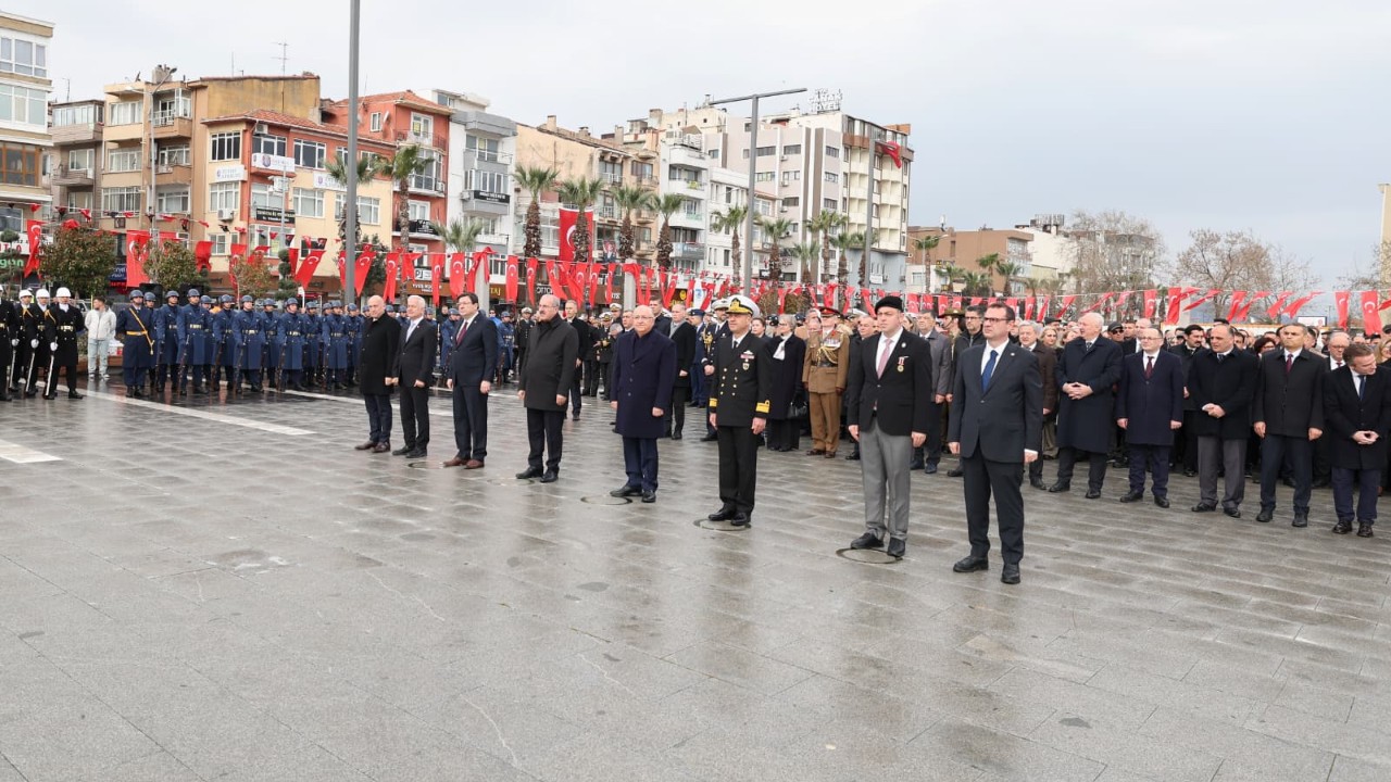 Milli Savunma Bakanı Yaşar Güler, Çanakkale Valisi Ömer Toraman, Çanakkale Belediye Başkanı Muharrem Erkek, Çanakkale Boğaz ve Garnizon Komutanı Tuğamiral Mustafa Biçen ile Türkiye Harp Malulü Gaziler, Şehit Dul ve Yetimleri Derneği Çanakkale Şube Başkanı Enes Arslan, Atatürk Anıtı’na çelenk bıraktı.Tören kapsamında TBMM tarafından 1994 yılında Çanakkale’ye şehitler adına verilen ve üzerinde “Çanakkale Geçilmez” yazılı altın madalya, Bakan Güler tarafından Türk bayrağına takıldı. Güler, madalyayı taktıktan sonra bayrağı öperek göndere çekti. Ardından saygı duruşunda bulunuldu ve İstiklal Marşı okundu.Anma töreninde, Çanakkale Boğazı’nda demirli TCG Kınalıada korvetinden 21 pare top atışı yapıldı.Törene ayrıca AK Parti Çanakkale Milletvekili Ayhan Gider, CHP Çanakkale Milletvekili İsmet Güneşhan, İYİ Parti Çanakkale Milletvekili Rıdvan Uz, Çanakkale Savaşları Gelibolu Tarihi Alan Başkanı İsmail Kaşdemir, Çanakkale Onsekiz Mart Üniversitesi Rektörü Prof. Dr. Cüneyt Erenoğlu, Avustralya’nın Ankara Büyükelçisi Sally-Anne Vincent, Yeni Zelanda Büyükelçi Yardımcısı Erin Morriss, Avustralya Savunma Ateşesi Albay Timothy Hawley, Birleşik Krallık Savunma Ateşesi Albay Jim Torbet, Avustralya’nın Çanakkale Konsolosu Laura Wauchope ve siyasi parti temsilcileri katıldı.Törenler, Çanakkale Deniz Zaferi’nin önemini ve şehitlerin anısını yaşatmak amacıyla çeşitli etkinliklerle devam edecek.