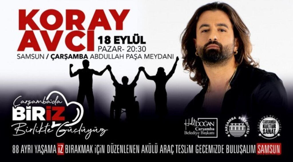 Çarşamba Belediyesince organize edilen “Çarşamba’da Biriz, Birlikte Güçlüyüz” temalı akülü araç teslim gecesinde, sevilen sanatçı Koray Avcı, Çarşambalı sevenleriyle buluşacak. 18 Eylül Pazar akşamı saat 20.30’da Abdullah Paşa Meydanı’nda gerçekleşecek gecede, Hollandalı iş insanı Ron Gezelle’nin bağışladığı 88 akülü araç, engelli vatandaşlara teslim edilerek hayatlarında bir iz bırakılacak.