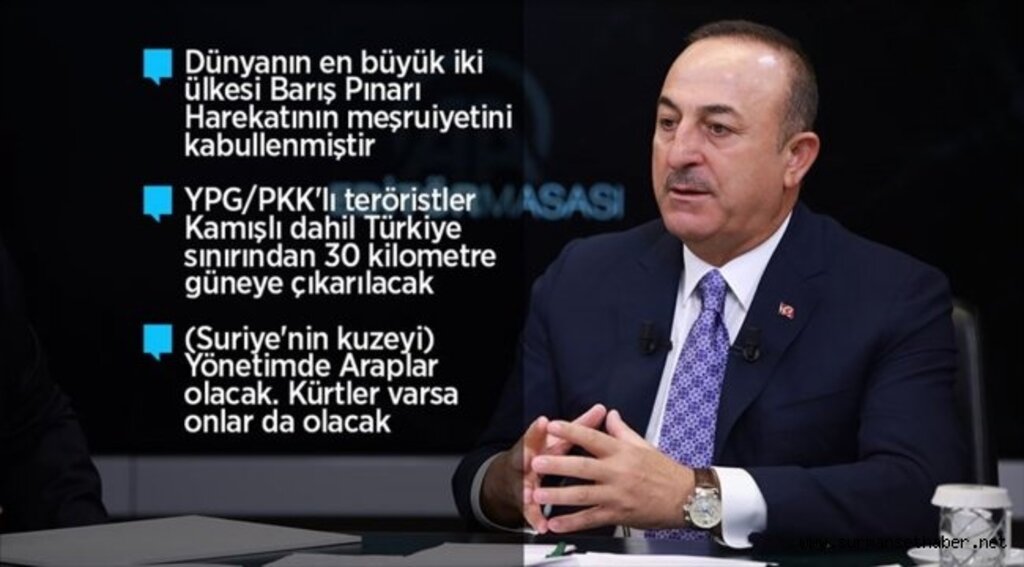 Çavuşoğlu, "30 kilometrenin altına çıkarılacak. Ne zaman çıkarılacak? 150 saat içerisinde. ABD ile vardığımız mutabakatta, 120 saat içinde, dün akşam saat 22.00'de doldu." diye konuştu.