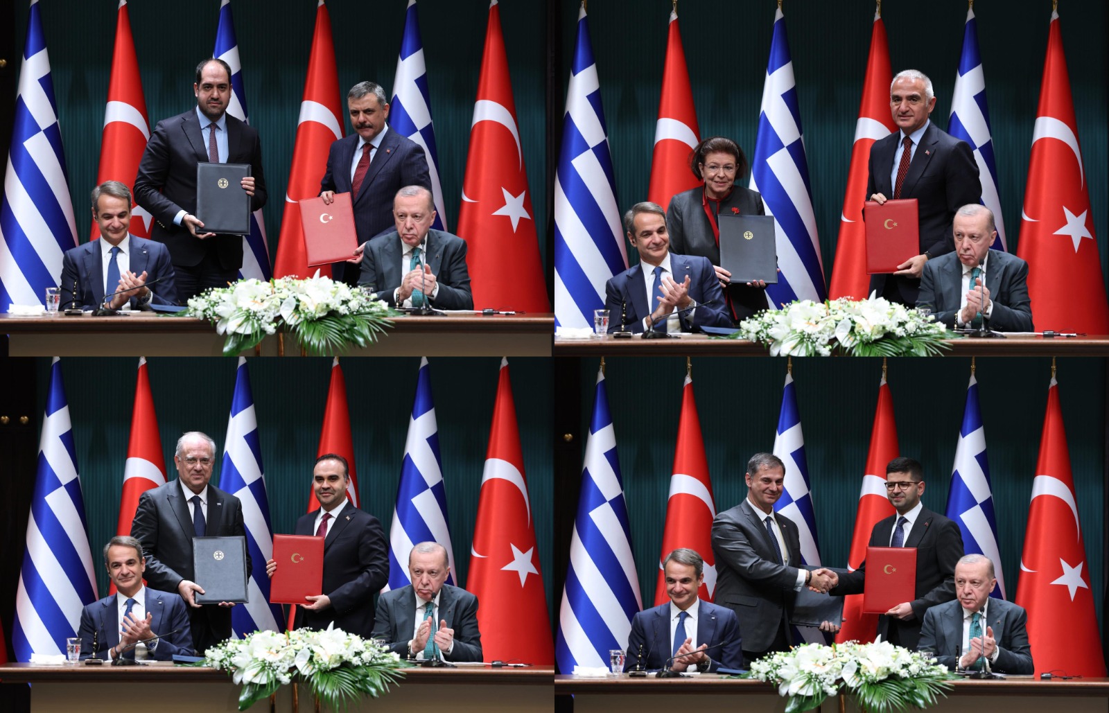 İKİ ÜLKE ARASINDA İMZALANAN ANLAŞMALAROturumun ardından iki ülke arasında anlaşmaların imza töreni düzenlendi.Cumhurbaşkanı Erdoğan ile Yunanistan Başbakanı Miçotakis, Türkiye Cumhuriyeti Hükûmeti ile Yunanistan Cumhuriyeti Hükûmeti Arasında Ortak Bildiri'yi imzaladı.Türkiye ile Yunanistan arasında imzalanan diğer anlaşmalar şöyle:“Türkiye Cumhuriyeti Cumhurbaşkanlığı Yatırım ve Finans Ofisi ile Yunanistan Yatırım ve Dış Ticaret Ajansı Arasındaki İşbirliği Hakkında Mutabakat Zaptı, Cumhurbaşkanlığı Yatırım ve Finans Ofisi Başkanı Burak Dağlıoğlu ile Yunanistan Dışişleri Bakan Yardımcısı Haris Theoharis imza attı.İzmir Limanı ile Selanik Limanı Arasında Ro-Ro Seferlerinin Başlatılmasının Teşvik Edilmesine İlişkin Mutabakat Zaptı'nı, Dışişleri Bakan Yardımcısı Mehmet Kemal Bozay ile Theoharis imzaladı.Karadeniz Ekonomik İşbirliği Teşkilatı Çerçevesinde İşbirliğinin Güçlendirilmesine İlişkin Mutabakat Zaptı, Bozay ve Theoharis tarafından imzalandı.Depreme Hazırlık Konusunda İkili İşbirliğinin Güçlendirilmesine İlişkin Mutabakat Zaptı'na, İçişleri Bakanı Mustafa Çiftçi ile Yunanistan İklim Krizi ve Sivil Koruma Bakanı Ioannis Kefalogiannis imza attı.Kültür Alanında İşbirliği Hakkında Mutabakat Zaptı'nı, Kültür ve Turizm Bakanı Mehmet Nuri Ersoy ile Yunanistan Kültür Bakanı Lina Mendoni imzaladı.Türkiye Cumhuriyeti Sanayi ve Teknoloji Bakanlığı ile Yunanistan Cumhuriyeti Kalkınma Bakanlığı Arasında Bilim ve Teknoloji Alanında İşbirliğine Dair Ortak Niyet Beyanı, Sanayi ve Teknoloji Bakanı Mehmet Fatih Kacır ile Yunanistan Kalkınma Bakanı Takis Theodorikakos tarafından imzalandı.”