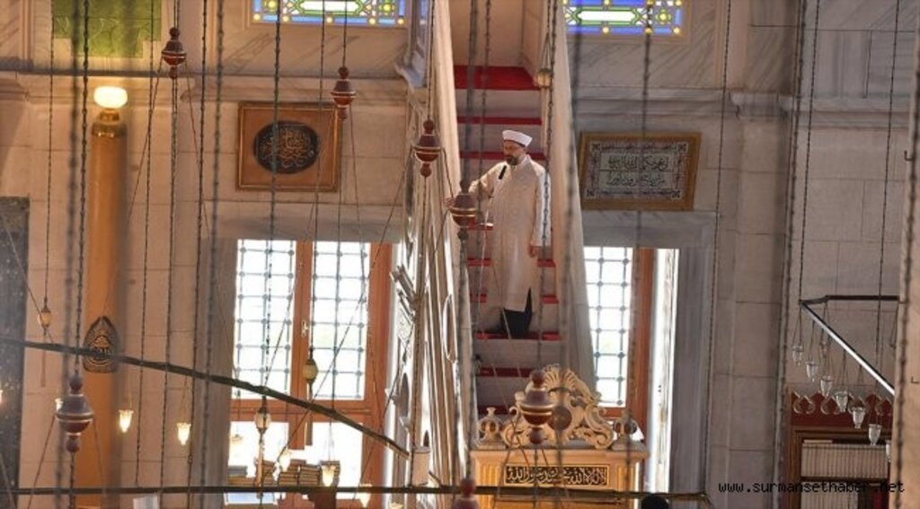 Diyanet İşleri Başkanı Ali Erbaş, cuma hutbesi sonunda vatandaşları İstanbul'un fethinin 566'ncı yıl dönümü dolayısıyla yarın akşam Yenikapı Meydanı'nda kılınacak Enderun teravihi ve büyük dua buluşmasına davet etti.Diyanet İşleri Başkanı Erbaş, Cuma namazında Fatih Camisinde hutbe irad etti.Erbaş, hutbede Kadir Gecesi üzerinde durarak bu gecenin kıymetini bilmek isteyenlerin öncelikle Kur'an'a yönelmeleri gerektiğini söyledi.Bu gecede Kur'an-ı Kerim'i güzel okumanın, en güzel biçimde anlamanın ve yaşamanın hayatın ana gayesi olduğunu bir defa daha hatırlaması gerektiğini belirten Erbaş, şöyle konuştu:"Ömrümüzü Kur'an ile aydınlatmak ve bereketlendirmek istiyorsak Kadir Gecesi bunun tam zamanıdır. Kur'an-ı Kerim'in nazil olduğu bu geceyi fırsat bilerek zihnimizi ve gönlümüzü Kur'an'a bağlayalım. Kur'an'ı daha çok okuyalım, anlamak için emek verelim, yaşamaya ve yaşatmaya gayret edelim. Kadir gecesini kendimizi muhasebe edebileceğimiz, günahlarımızdan af ve mağfiret dileyeceğimiz bir fırsat olarak değerlendirelim. Ömrümüzün tamamını bereketlendirmek için her gecenin kadrini, her nimetin kıymetini bilelim. Böylelikle bin aydan daha hayırlı olan bu lütuf ve ikram gecesinin feyzinden istifade etmiş olalım."Erbaş, hutbenin sonunda bayram tatili için yola çıkacak vatandaşlara uyarılarda bulunarak kurallara uyulmasını istedi.Bayrama sayılı günler kaldığını hatırlatan Erbaş, "Birçoğumuz bugünden itibaren bayramı sevdiklerimizle geçirmek için yola çıkacağız. Gidiş ve dönüş yollarındaki yoğunluk her zamankinden daha fazla dikkatli olmamızı gerektirmektedir. Zira yaşanan trafik kazaları bayram sevincimizi hüzne dönüştürmekte; millet olarak hepimizin yüreğini dağlamaktadır. Hız ihlali, hatalı sollama, yakın takip, yorgunluk gibi sebeplerle meydana gelen kazalarda nice insanımız, nice kardeşimiz can veriyor. Nice ocaklar sönüyor. Bu noktada bütün kardeşlerimizi trafik kurallarına uymaya, sabırlı, anlayışlı ve dikkatli davranmaya, birbirimizin hak ve hukukuna saygılı olmaya davet ediyorum." ifadelerini kullandı."Yarın akşam hizmetlerimizi taçlandıracağız"
