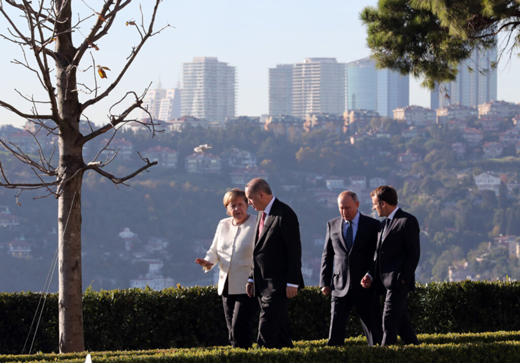 Suriye konulu dörtlü zirve başladı Cumhurbaşkanı Recep Tayyip Erdoğan, Rusya Devlet Başkanı Vladimir Putin, Fransa Cumhurbaşkanı Emmanuel Macron ve Almanya Başbakanı Angela Merkel