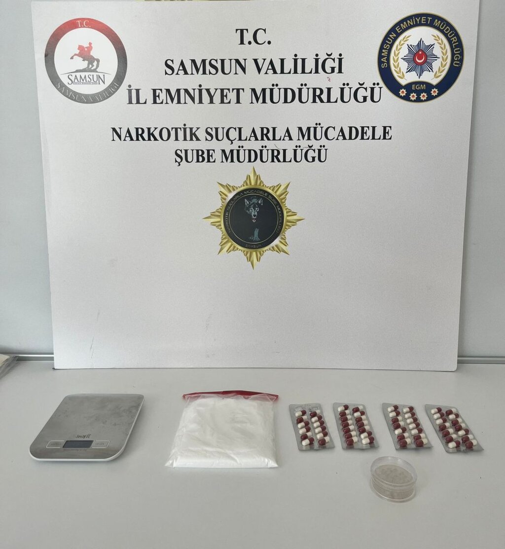 Samsun İl Emniyet Müdürlüğü ekipleri, uyuşturucu satıcılarının yakalanması ve etkisiz hale getirilmesine yönelik çalışmalarını aralıksız sürdürüyor. Gece saat 03.30 sıralarında İlkadım ilçesinde Liman Mahallesi’nde devriye atan bekçiler, boş araziye bırakılan koliyi fark etti. Devamında Narkotik Suçlarla Mücadele Şube Müdürlüğünün yapmış olduğu çalışmalar neticesinde koli içerisinde 4047 adet sentetik ecza ele geçirildi.Koliyi boş araziye bıraktığı tespit edilen A. K. Y. ve F. Ç. gözaltına alındı.DAHASI DA ÇIKTIGözaltına alınan şüpheli A.K.Y'nin ofis ve ikametinde yapılan aramada;