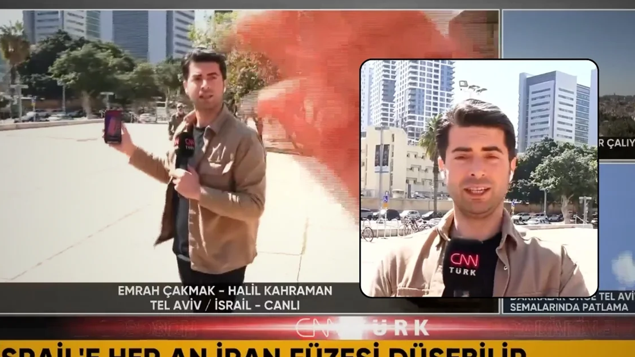 İran’ın Tel Aviv’e yönelik füze saldırısının ardından şehirde yaşanan hareketlilik ekrana taşınıyordu. Saldırı sonrası sivillerin sığınaklardan çıkışı görüntülenirken polis ekipleri yayın yapılan noktaya geldi.