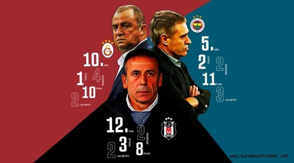 Süper Lig'de İstanbul'un "Üç Büyükler"i olarak adlandırılan Galatasaray, Fenerbahçe ve Beşiktaş, bu sezon tarihi düşüşlerinden birini yaşıyor.Ligin en çok şampiyon olan takımları Galatasaray, Fenerbahçe ve Beşiktaş, 7. haftalar dikkate alındığında son 40 yılın en büyük düşüşüne engel olamadı.Süper Lig'de 7. hafta geride kalırken Fenerbahçe 3 galibiyet, ikişer beraberlik ve yenilgiyle 11 puan toplayarak 5. sırada yer aldı.Son 2 sezonun şampiyonu Galatasaray ise 2 galibiyet, 4 beraberlik ile 1 yenilgi sonunda 10 puan elde etti ve 10. sırada kaldı.En kötü performansı gösteren ve ikişer galibiyet, beraberlik, 3 yenilgiyle 8 puan toplayabilen Beşiktaş ise 12. sırada yer bulabildi.İstanbul'un "Üç Büyükler"i, ortaya koydukları performansla 7. haftalar dikkate alındığında 39 sezon sonra sıralamada ilk dördün dışında kaldı.Bu sezonun 7 haftalık bölümününde ilk dört sıra Aytemiz Alanyaspor, Demir Grup Sivasspor, Trabzonspor ve İttifak Holding Konyaspor'dan oluştu.1979-1980'da da ilk dördün dışında kalmışlardı