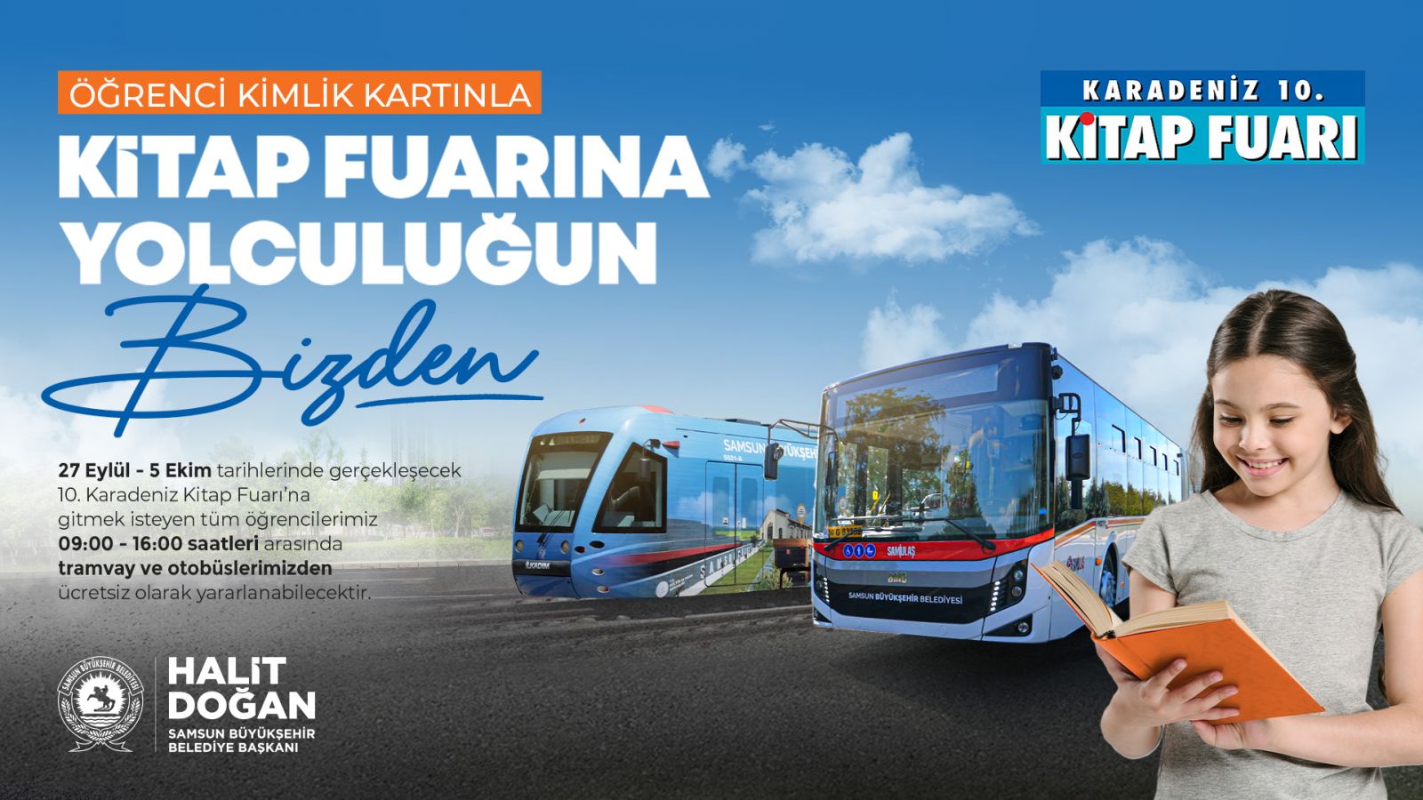 Fuara giden öğrencilere otobüs ve tramvaylar ücretsizFuara katılımı artırmak ve özellikle gençleri kitaplarla buluşturmak amacıyla Samsun Büyükşehir Belediyesi tarafından 27 Eylül - 5 Ekim tarihleri arasında, her gün 09.00-16.00 saatleri arasında fuara katılmak isteyen öğrenciler öğrenci kartlarını göstermeleri koşuluyla şehir içi tramvay ve otobüsleri ücretsiz kullanabilecek. Böylece öğrenciler fuara kolayca ulaşabilecek ve kültürel bir atmosferde kitaplarla buluşabilecek.Kitaplarla dolu bir haftaya ev sahipliği yapacak olan Karadeniz 10. Kitap Fuarı, yazar imza günleri, söyleşiler, paneller ve çocuk etkinlikleriyle her yaştan ziyaretçiye hitap edecek. Samsun Büyükşehir Belediyesi tüm Samsunluları ve çevre illerden gelecek kitapseverleri fuara davet ediyor.