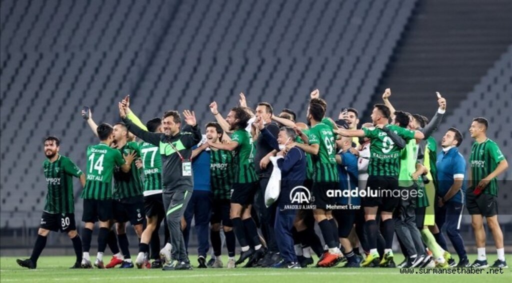 (AA) - Misli.com 2. Lig play-off finalinde Kocaelispor, Sakaryaspor'u yenerek TFF 1. Lig'e yükseldi.Atatürk Olimpiyat Stadı'nda oynanan karşılaşmada üstün bir oyun sergileyen Kocaelispor, rakibi karşısında ilk yarıyı 3-0 önde tamamladı. İkinci yarıda bir gol daha bulan Kocaelispor, rakibine 4-0 üstünlük kurarak Manisa ve Eyüpspor'un ardından gelecek sezon TFF 1. Lig'de mücadele edecek üçüncü takım oldu.Karşılaşmayı 500 kadar taraftar da tribünden takip etti.Mücadelenin ardından play-off birincisi Kocaelispor, kupasını aldı. Türkiye Futbol Federasyonu Başkan Vekili Ali Düşmez, kupayı takım kaptanı Numan Çürüksu'ya verdi. Koaelisporlu oyuncular kupayla büyük bir sevinç yaşadı. kocaelispor 11 yıl sonra TFF 1. Lig'de