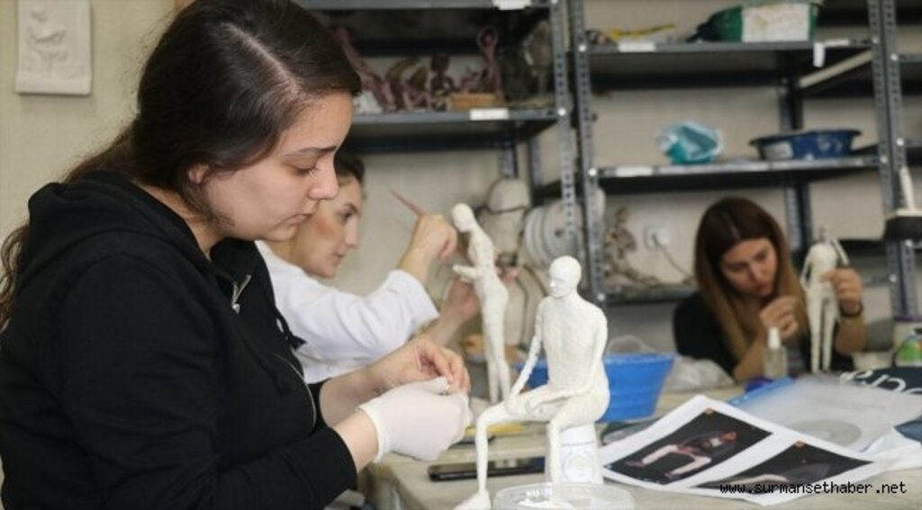 Resim iş öğretmenliği son sınıf öğrencisi Lale Katırancı da kullanılmayan atık kağıtları dönem başından itibaren toplamaya başladıklarını anlatarak, "Kağıtları belli işlemlerden geçirdikten sonra hamur elde ettik. Kağıt peçeteden de aynı işlemleri yaptık. Aşama aşama heykelimizi oluşturmaya devam ediyoruz. Bu dersimizin en önemli yönü özellikle geri dönüşüm malzemelerini kullanıyor olmamız. Maliyeti çok düşük malzemeleri kullanıyoruz. Buna rağmen çok güzel işler çıkartabiliyoruz." diye konuştu.Dışarıdan hazır alınan materyalleri kullanmaktan ziyaden doğadan toplanan malzemelerin kullanılmasının daha güzel olduğunu dile getiren Katırancı, "Doğadan alınıp belki de kimsenin yüzüne bakmadığı malzemeleri biz böyle geri dönüşüm sayesinde böyle güzel eserler elde edebiliyoruz." ifadelerini kullandı.Resim iş öğretmenliği son sınıf öğrencisi Enis Aydoğan da atölyede heykel dersi aldıklarını, atık malzemeleri kullanarak bir insan figürü oluşturduklarını, atık kağıt parçalarıyla heykel yaptıklarını ifade etti.