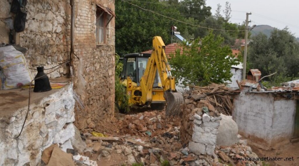 Orman Şehidi Erdal Tovka’nın Bergama Tırmanlar Mahallesi’nde ikamet eden anne ve babasının evinde yapılan tespitlerin ardından, onarım öncesinde yıkılan duvar ve çatının molozlarının temizliğine başlandı.