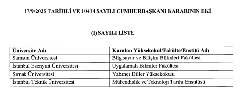 Karara göre yeni kurulan yükseköğretim birimleri şunlar oldu: