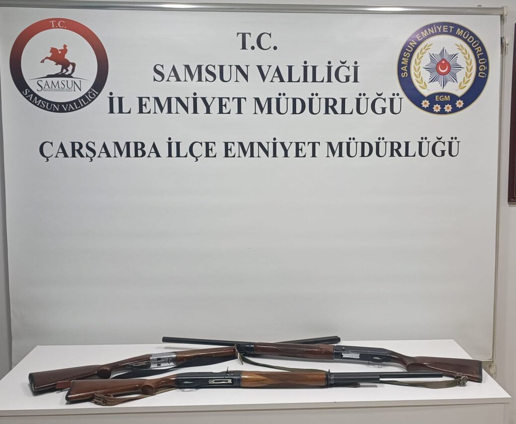 Çarşamba İlçe Emniyet Müdürlüğü ekipleri tarafından gerçekleştirilen denetimde, şüphe üzerine durdurulan Ş.Ç.'nin aracı detaylı olarak arandı. Aramada, 2'si farklı bir şahsa ait olmak üzere toplam 3 adet ruhsatsız tüfek bulundu.