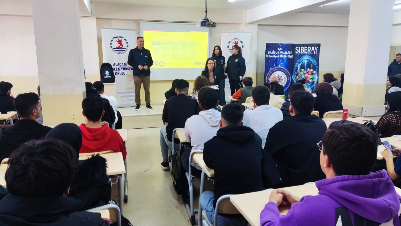 Samsun’un Alaçam ilçesinde, İlçe Emniyet Müdürlüğü tarafından SİBERAY Programı kapsamında öğrencilere yönelik bilgilendirme seminerleri düzenlendi. Siber Suçlarla Mücadele Şube Müdürlüğü koordinesinde gerçekleştirilen eğitimlerde, gençlerin dijital ortamdaki tehditlere karşı farkındalığının artırılması hedeflendi.
