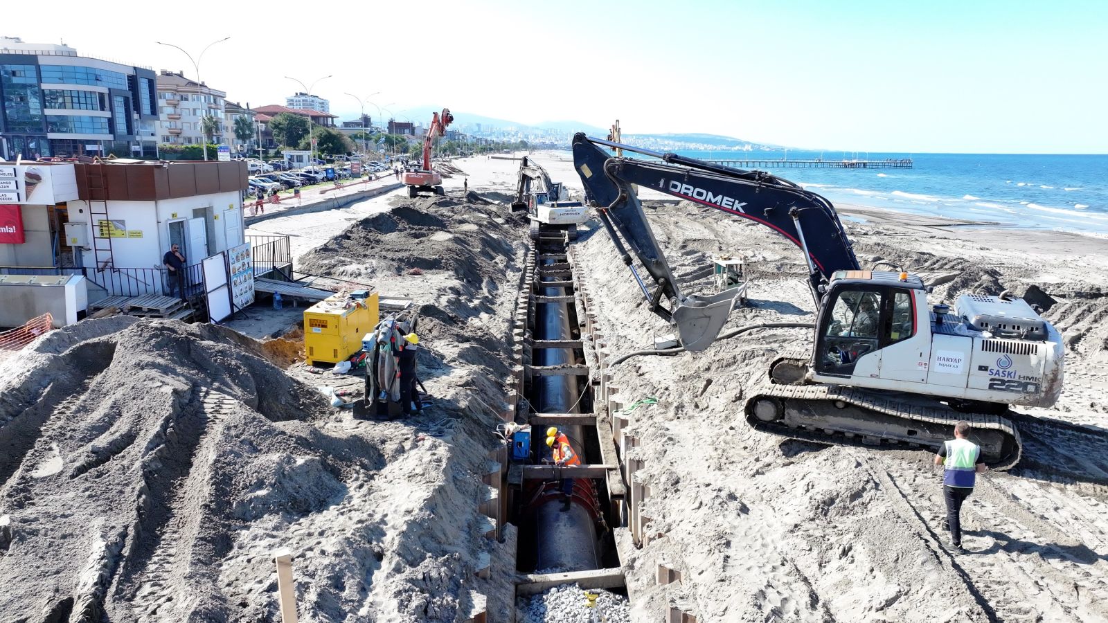 Samsun Büyükşehir Belediyesi Su ve Kanalizasyon İdaresi (SASKİ) Genel Müdürlüğü, Atakum sahilinde hayata geçirilen atık su kolektör hattı çalışmalarıyla kentin altyapısına kalıcı bir çözüm sunuyor. Proje tamamlandığında bölgenin atık su kolektör kapasitesi iki katına çıkarılacak. Yeni hat, Çobanlı İskelesi TM3 Terfi Merkezi’nden başlayarak İl Emniyet Müdürlüğü TM2 Terfi Merkezi’ne kadar uzanacak.
