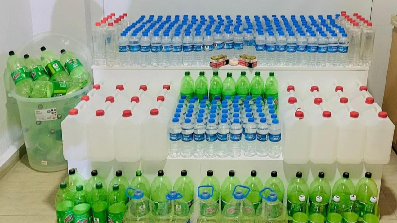 Sahte içki yapımında kullanıldığı değerlendirilen 77 adet boş şişe ve kova,
