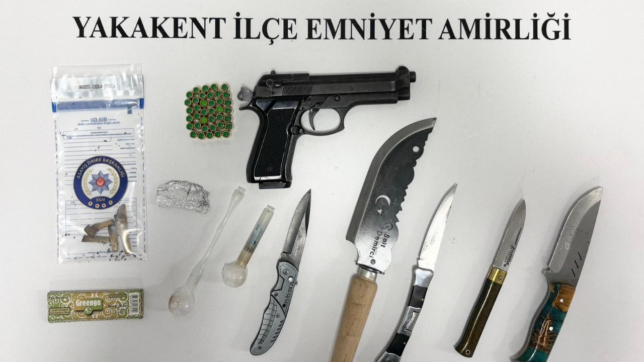 Uygulamalarda 1 kurusıkı tabanca, 38 fişek, 5 bıçak, 4 esrarlı sigara, 2 payp, 0.3 gram metamfetamin ve 1 çarşaf bulundu. Toplam 7 kişi hakkında Türk Ceza Kanunu’nun 191. maddesi kapsamında adli tahkikat başlatıldı.