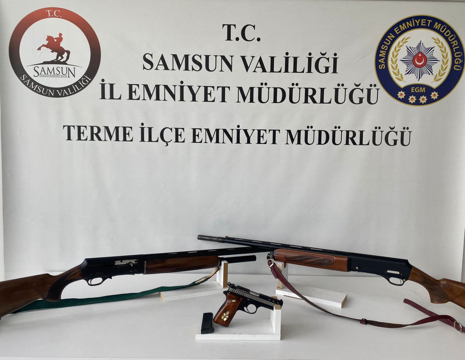 Samsun İl Emniyet Müdürlüğü Terme İlçe Emniyet Müdürlüğü ekipleri yürütülen çalışmalar kapsamında ilçede iki ayrı ikamette arama yaptı. Yapılan aramalar sonucu 1 adet ruhsatsız tabanca ve 2 adet ruhsatsız tüfek ele geçirildi.