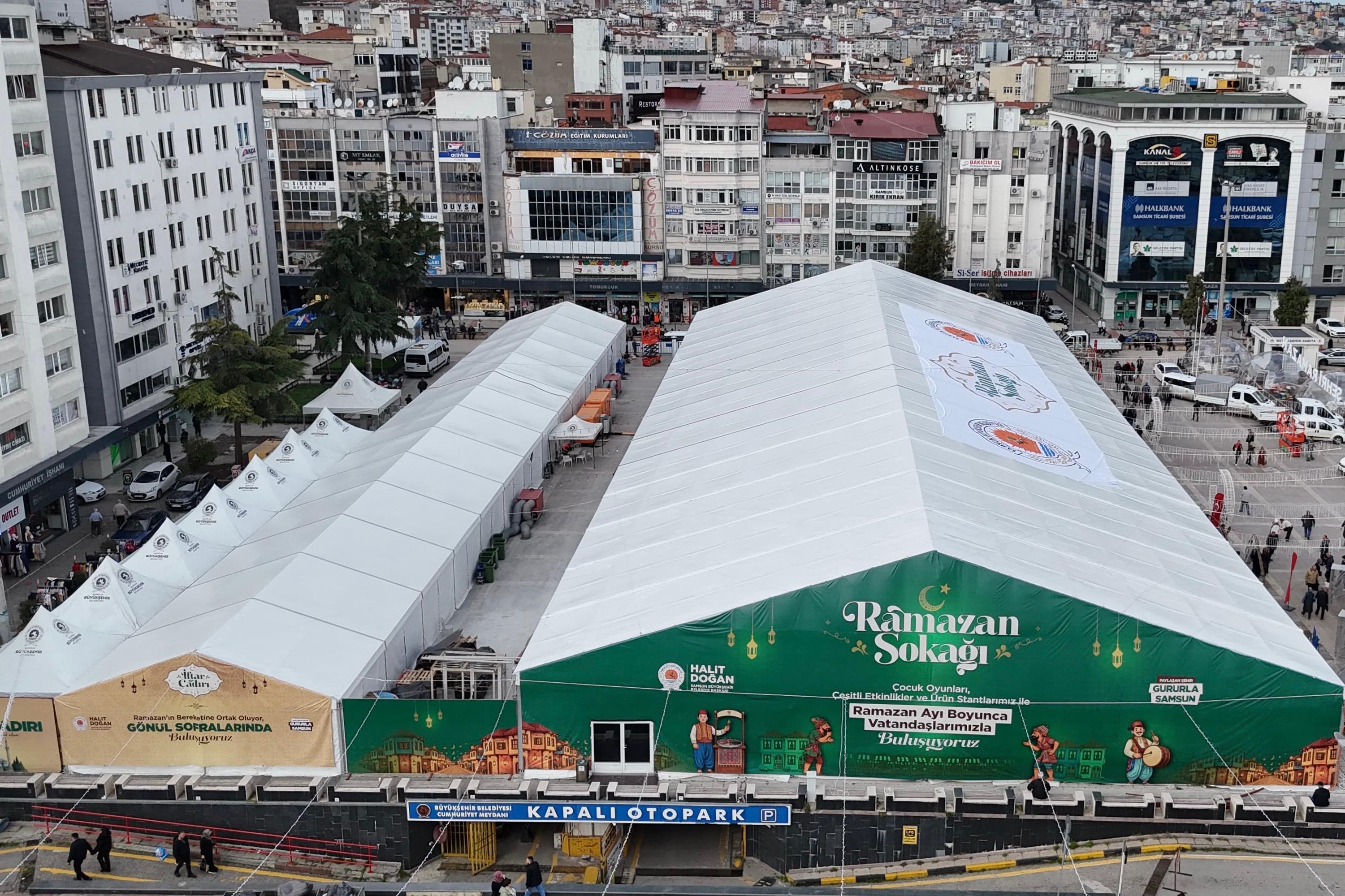Samsun Büyükşehir Belediyesi tarafından geçmişten günümüze uzanan Ramazan geleneklerini yaşatmak ve Ramazan ayının manevi atmosferini şehre yaymak amacıyla düzenlenen Ramazan Sokağı, Cumhuriyet Meydanı’nda başladı. Meydan, etkinlik alanları, stantlar ve iftar sofralarıyla kültür ve sanatın buluşma noktası haline geldi.