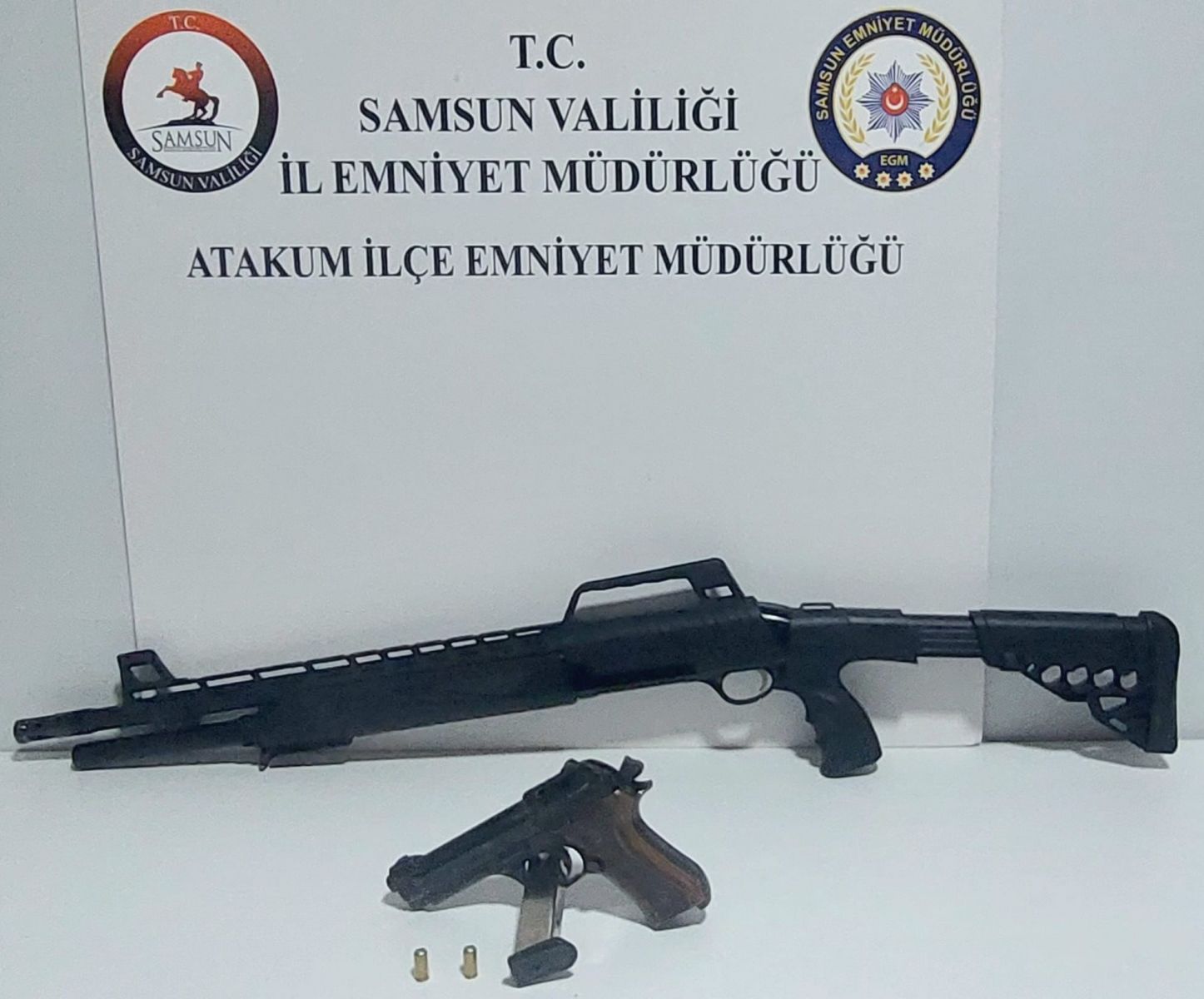 Samsun İl Emniyet Müdürlüğü’ne bağlı Atakum İlçe Emniyet Müdürlüğü ekipleri, K.K. (27) isimli şahsın üzerinde ve eşyalarında arama yaptı. Yapılan aramalarda 1 adet ruhsatsız tüfek ve 1 adet kurusıkı tabanca ele geçirildi.Şahıs hakkında gerekli yasal işlemler başlatıldı.Emniyet yetkilileri, “Nereye gizlerseniz gizleyin, ruhsatsız silahları tek tek bulup ortaya çıkaracağız. Halkımızın huzurunu bozmanıza asla müsaade etmeyeceğiz!” ifadelerini kullandı.
