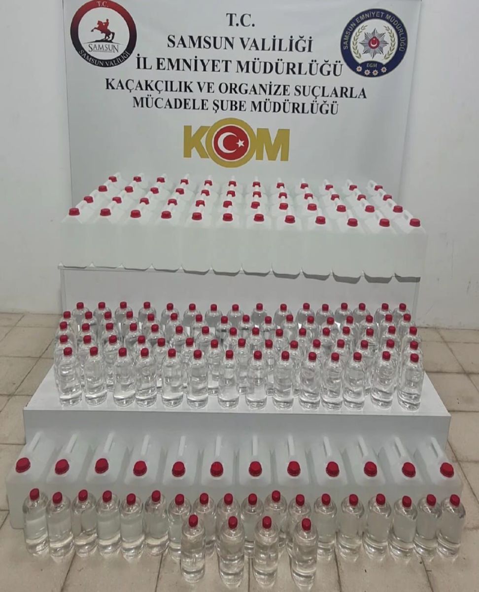 Samsun İl Emniyet Müdürlüğü Kaçakçılık ve Organize Suçlarla Mücadele Şube Müdürlüğü ekiplerince, kaçak ve sahte alkollü içki üretiminin önlenmesine yönelik yürütülen çalışmalar kapsamında İlkadım ilçesinde operasyon gerçekleştirildi.Yapılan çalışmalarda durdurulan bir araçta ve bir ikamette yapılan aramalarda;445 litre sahte alkollü içki yapımında kullanılan etil alkol ele geçirildi.