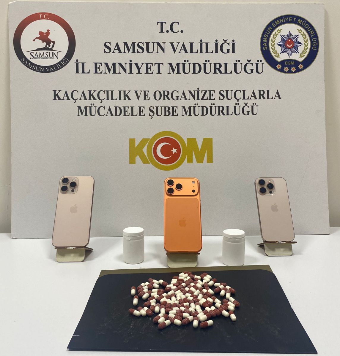 Samsun İl Emniyet Müdürlüğü Kaçakçılık ve Organize Suçlarla Mücadele (KOM) Şube Müdürlüğü ekipleri, kaçakçılık ve uyuşturucu ticaretine yönelik çalışmalar kapsamında Atakum ilçesinde bir operasyon düzenledi.Yapılan operasyonda, bir şüphelinin üzerinde ve ikametinde gerçekleştirilen aramalarda 3 adet gümrük kaçağı cep telefonu ile 98 adet sentetik ecza (uyuşturucu hap) ele geçirildi.Operasyon kapsamında 1 kişi gözaltına alınarak hakkında adli işlem başlatıldı.Emniyet yetkilileri, suç ve suçlularla mücadelenin kararlılıkla sürdüğünü belirterek, “Suç ve suçluya geçit yok, her yerdeyiz” mesajını paylaştı.