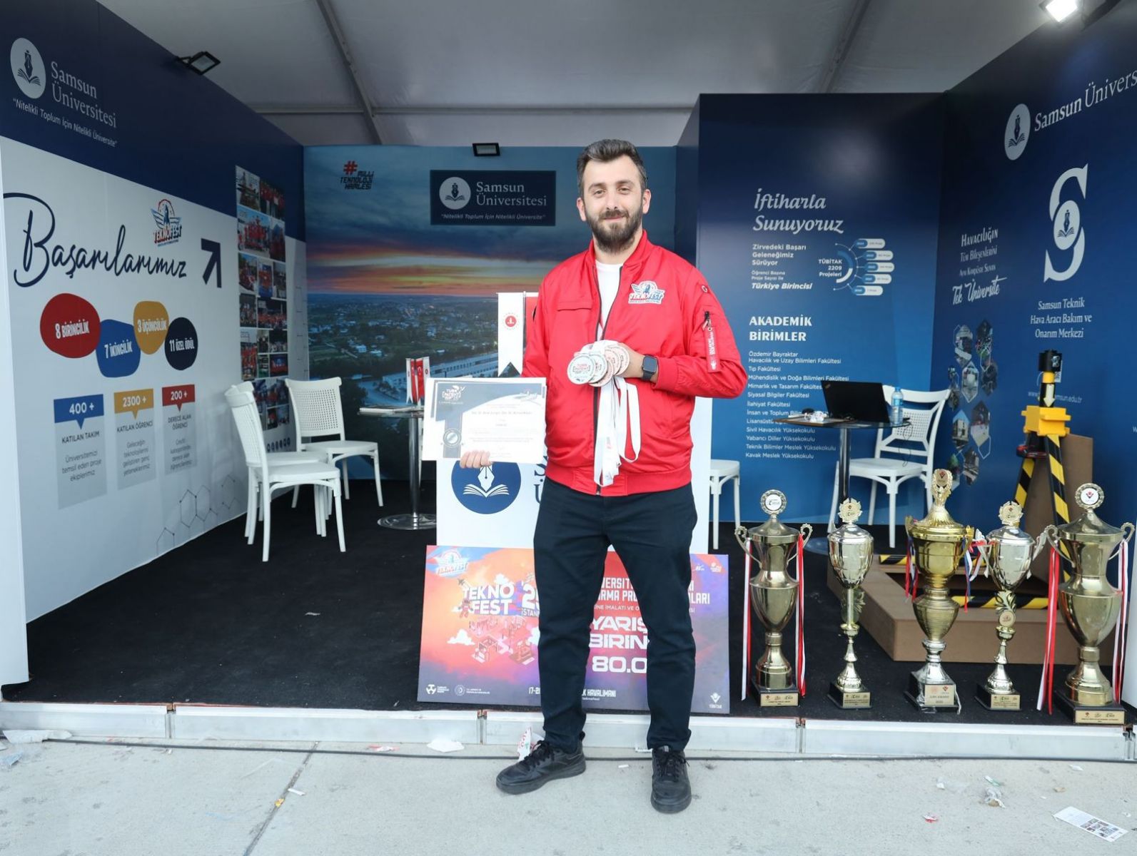 TEKNOFEST ile özdeşleşen ve bundan önceki tüm TEKNOFEST’lerde kazandığı ödül ve derecelerle adından söz ettiren Samsun Üniversitesi, TEKNOFEST 2025'te gösterdiği performansla bir kez daha Samsun'un gurur kaynağı oldu. Üniversitenin öğrenci ve öğretim elemanları TEKNOFEST 2025'te düzenlenen yarışmalarda 1 birincilik, 1 ikincilik, 3 üçüncülük ve 1 performans ödülü; Uluslararası Buluş Fuarı’nda ise 1 altın, 2 gümüş, 3 bronz madalyakazanarak toplamda 12 dereceyle hem festivalde adından söz ettirdi hem de araştırma, geliştirme ve inovasyon alanındaki gücünü uluslararası düzeyde de gösterdi.