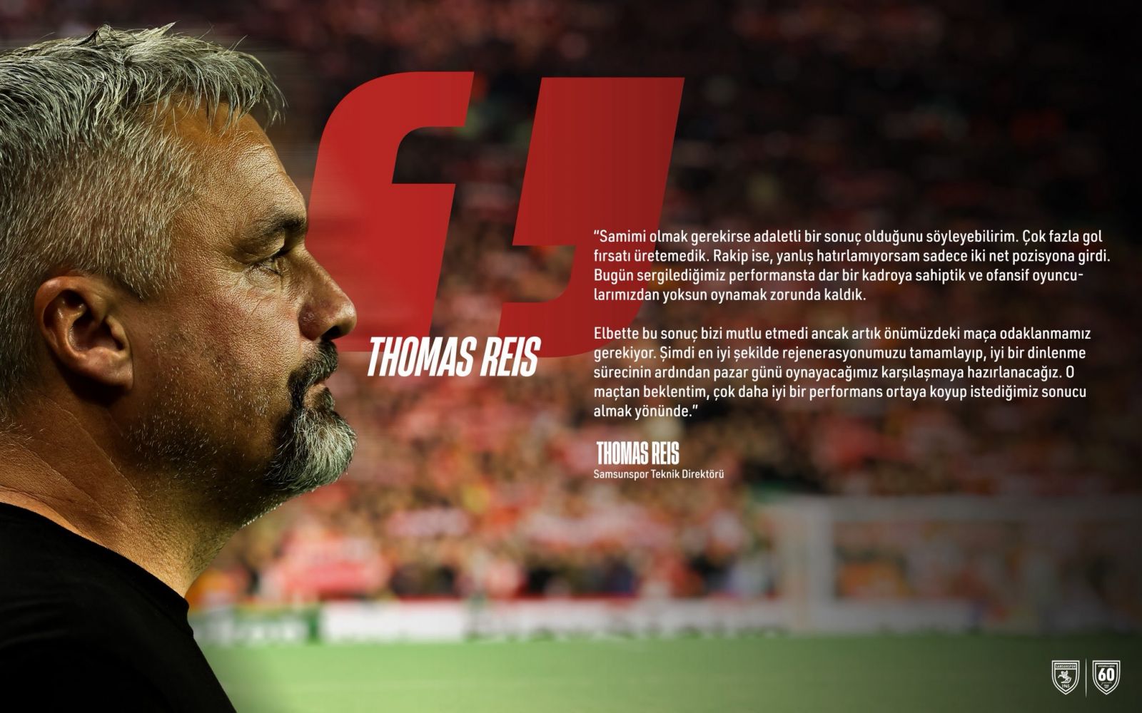 Trendyol Süper Lig’in 3. haftasından ertelenen maçta Samsunspor, sahasında Kasımpaşa ile golsüz berabere kaldı. Karşılaşmanın ardından açıklamalarda bulunan kırmızı-beyazlıların teknik direktörü Thomas Reis, üretkenlik açısından sıkıntı yaşadıklarını dile getirdi.