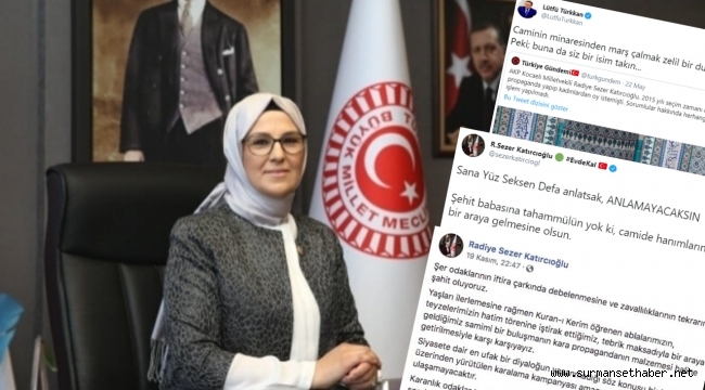 İP Grup Başkanvekili Lütfü Türkkan, Adalet ve Kalkınma Partisi Kocaeli Milletvekili Radiye Sezer Katırcıoğlu'nun 2015 yılındaki seçim dönemine denk gelen fakat seçim kampanyasıyla alakası olmayan Kuran-ı kerim öğrenen hanımefendilerin, hatim törenine iştirak ettiği fotoğrafları hedef alarak sosyal medya hesabından seçim kampanyasında camilerde oy istedi algısıyla bir paylaşım yaptı.