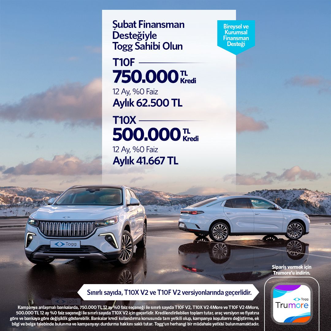 Togg, yeni renk seçeneğiyle birlikte şubat ayına özel finansman destek kampanyalarını da duyurdu.