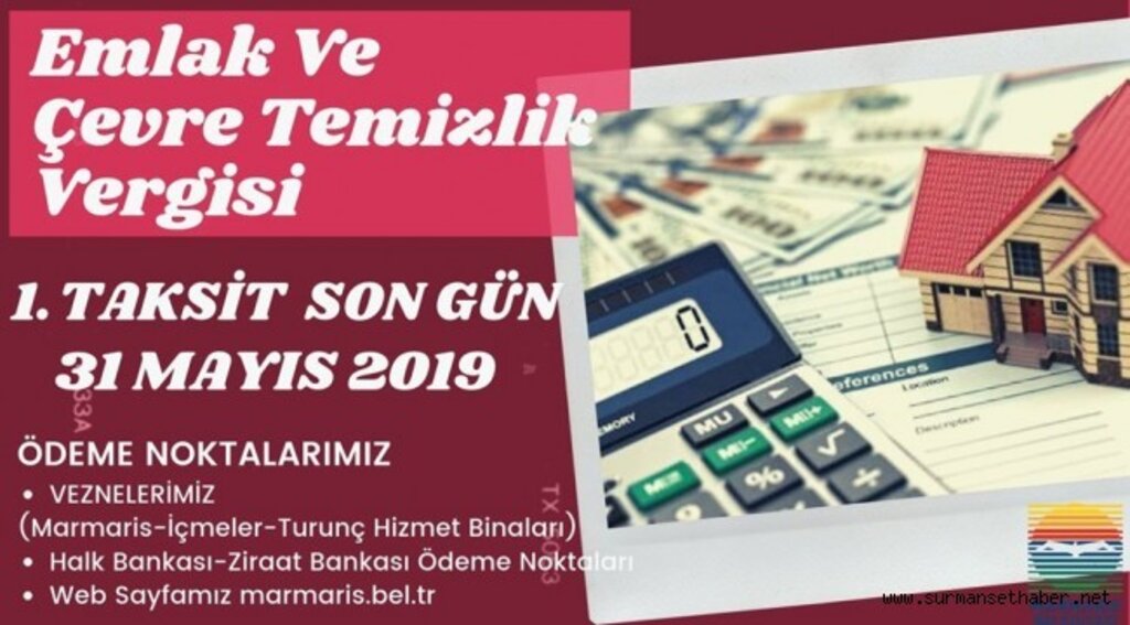 Emlak ve çevre temizlik vergisi 1. taksit ödemeleri için süre azaldı. Emlak sahiplerinin ödediği emlak vergisi ile işyeri sahiplerinin ödediği çevre temizlik vergisi ödemeleri için son gün 31 Mayıs Cuma.