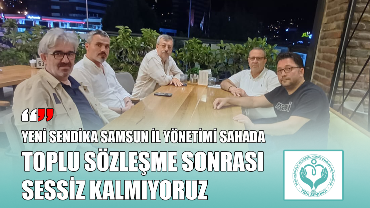 Samsun’da sağlık ve sosyal hizmet çalışanlarının haklarını savunan Yeni Sendika Samsun İl Yönetimi, toplu sözleşme süreci sonrası sahadaki faaliyetlerini artırma kararı aldı.16 Eylül akşamı Samsun’da bir araya gelen İl Yönetimi, toplu sözleşme süreci ve Hakem Heyeti kararlarını değerlendirdi. Toplantıya Yeni Sendika Samsun İl Başkanı İlhan Öksüz, Cemal Bulut, Hakan Elvan Arıkan, Mahir Karaca ve Fehmi Murat Kaya katıldı.Toplantıda öne çıkan konular: